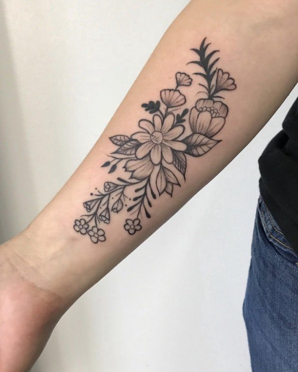 文艺花朵纹身 女生手臂上精致的花朵纹身图片