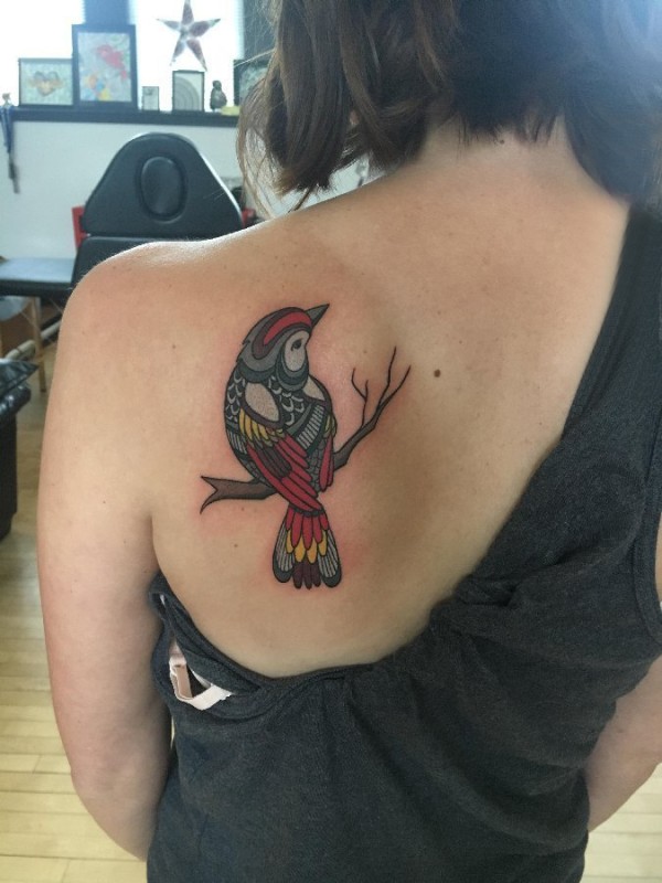 纹身鸟 女生后背上彩色的小鸟纹身图片