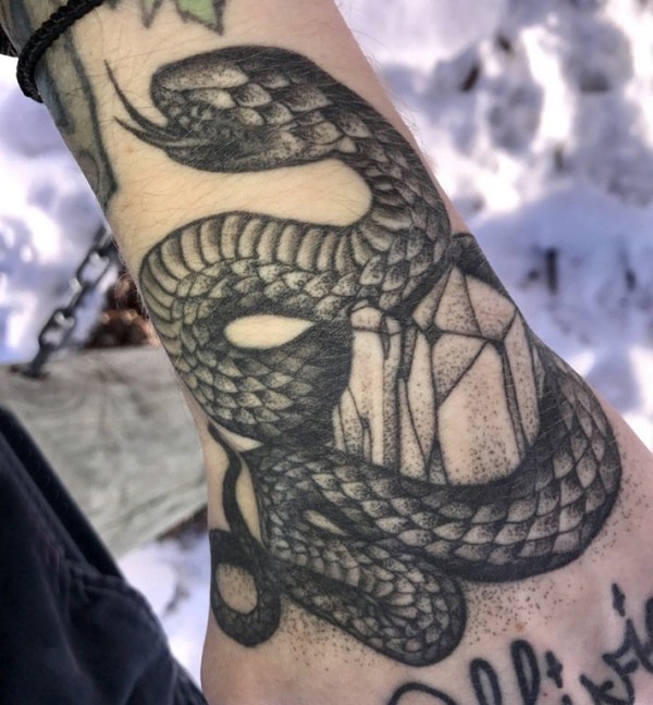 纹身蛇的图案 男生手背上黑色纹身蛇的图案
