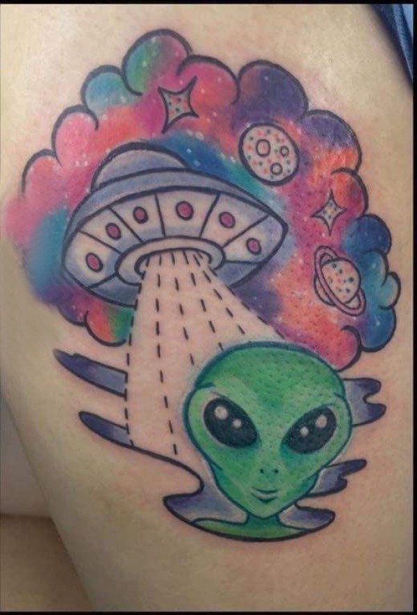 外星人纹身 女生大腿上飞碟和外星人纹身图片