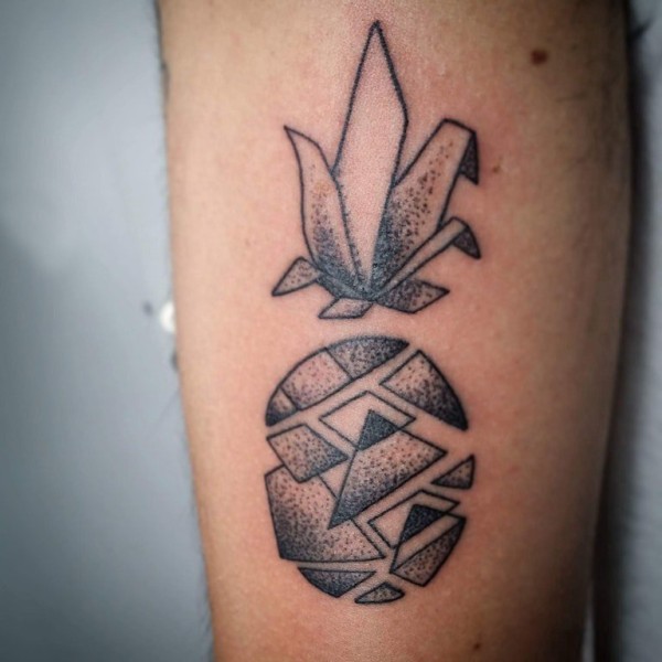 欧美小腿纹身 男生小腿上黑色几何菠萝纹身图片