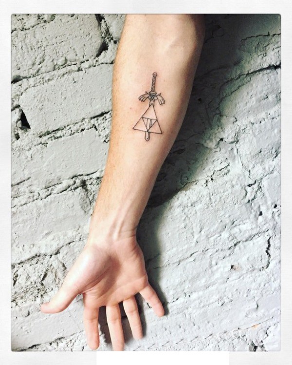 手臂纹身素材 男生手臂上三角形和宝剑纹身图片