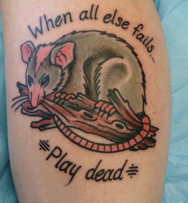 老鼠纹身图 男生小腿上彩色的老鼠纹身图片
