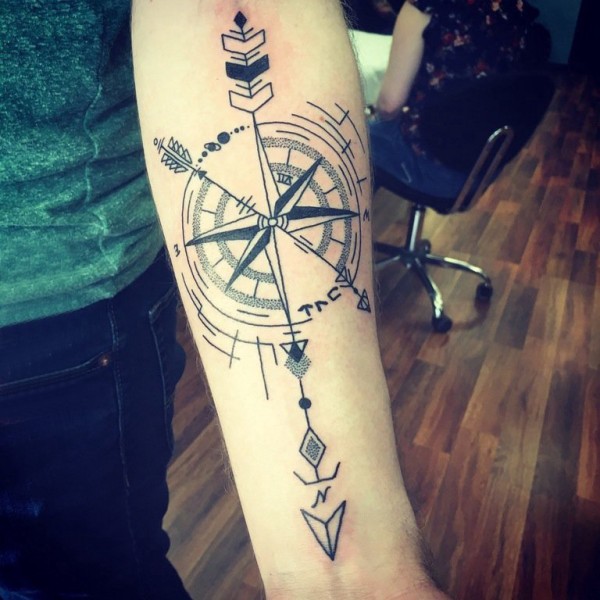 指南针纹身 女生手臂上黑色纹身指南针纹身图片