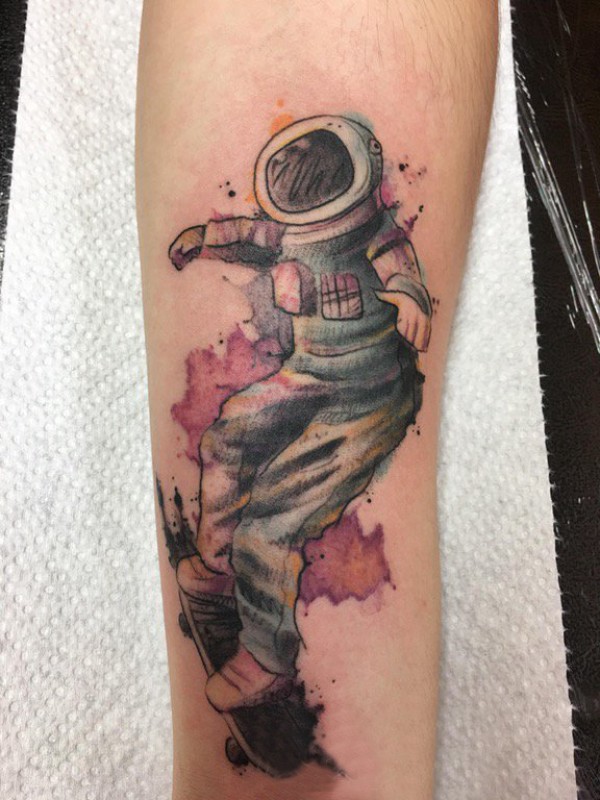 宇航员纹身图案 男生手臂上创意宇航员纹身图片