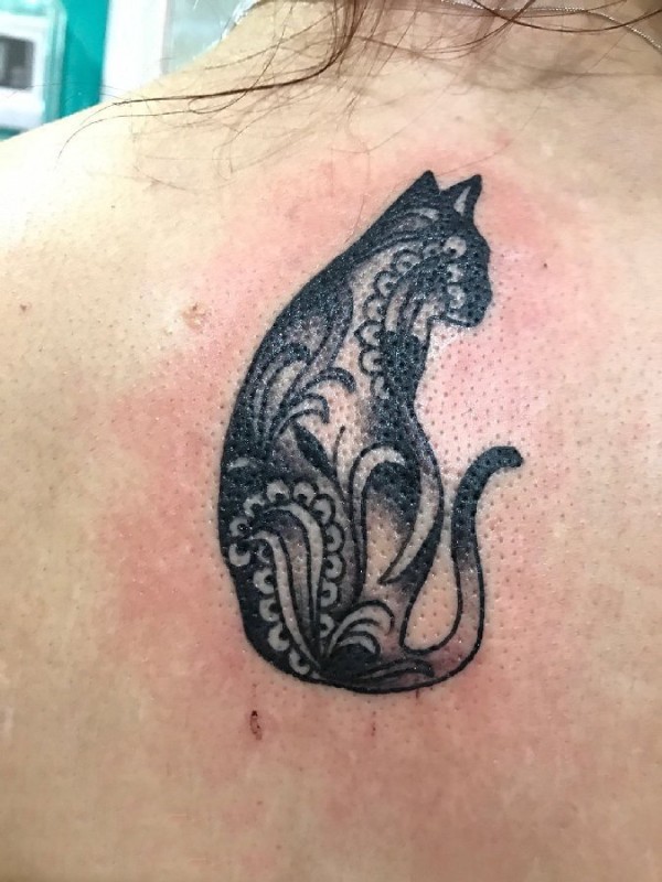 小清新猫咪纹身 女生背部小清新猫咪纹身图片