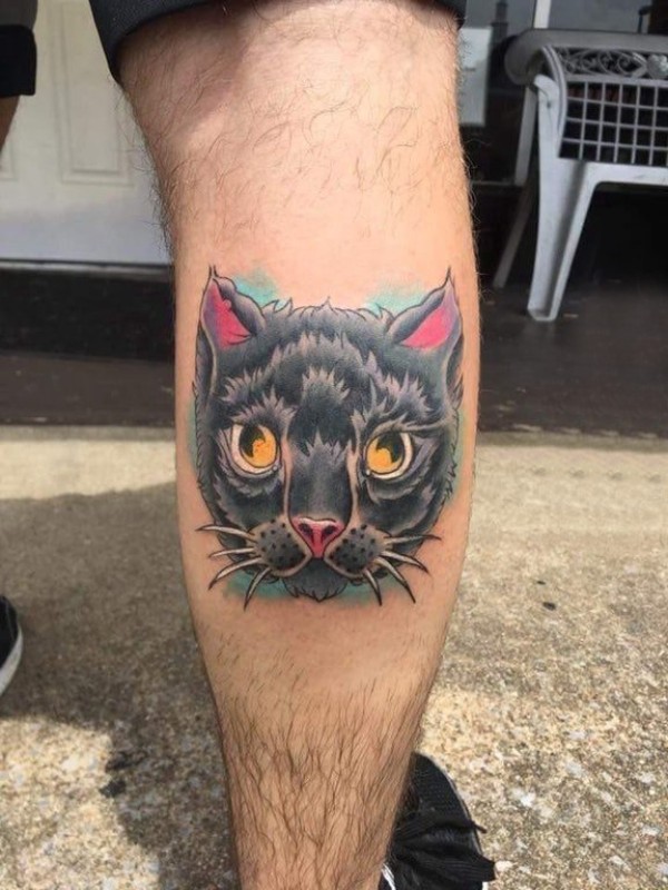 小猫咪纹身 男生小腿上小猫咪纹身图片