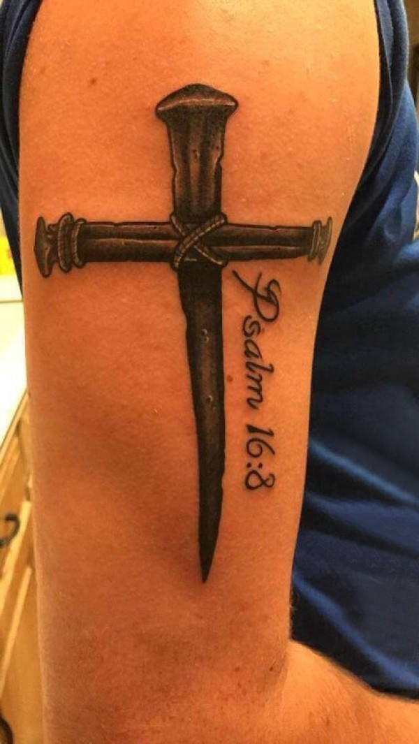 纹身小十字架 男生手臂上黑色的十字架纹身图片