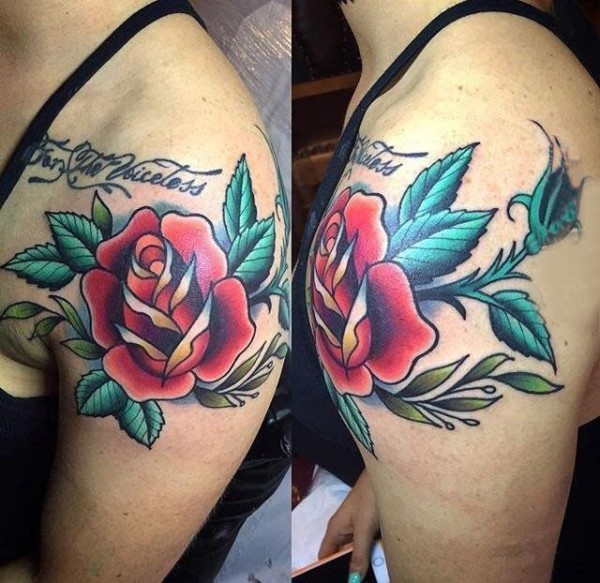 后肩唯美花藤英文图案图片_植物纹身图案大全_纹身图吧