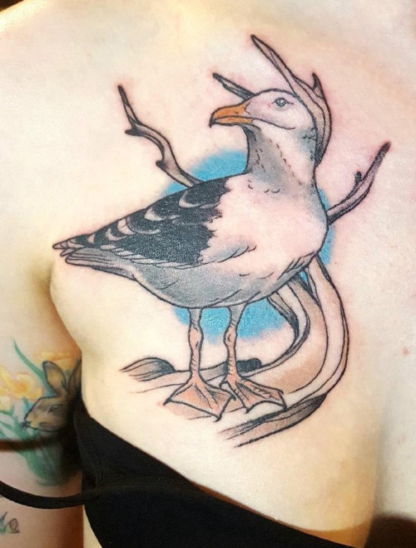 纹身海鸥 女生胸部彩色的海鸥纹身图片