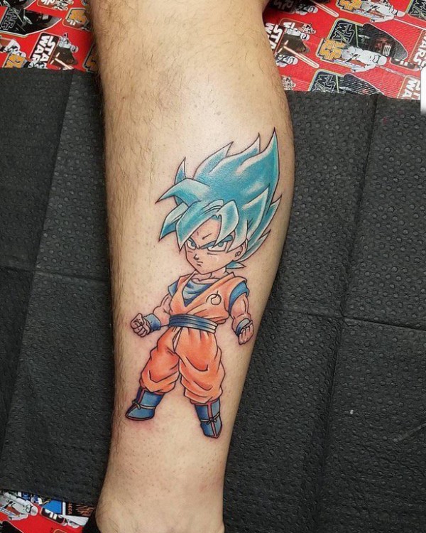 超级赛亚人纹身 男生小腿上彩色的卡通超级赛亚人纹身图片
