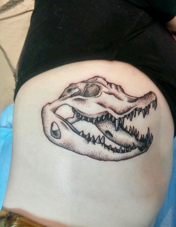 骨头纹身 男生侧腰上黑色的骷髅骨头纹身图片