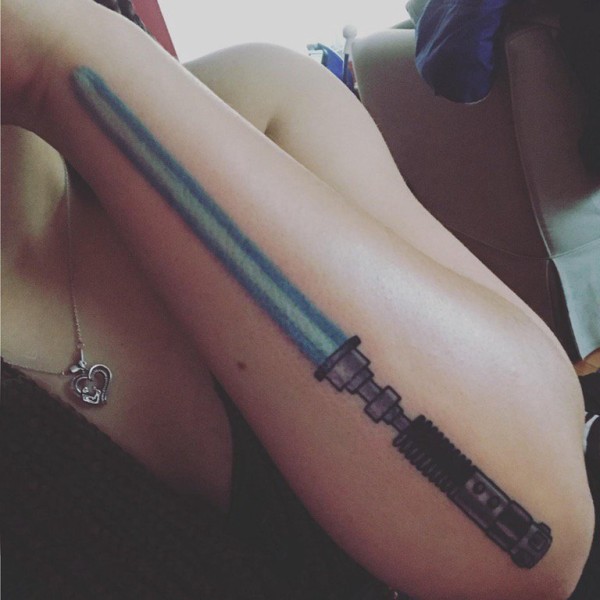 宝剑纹身 女生手臂上彩色的宝剑纹身图片