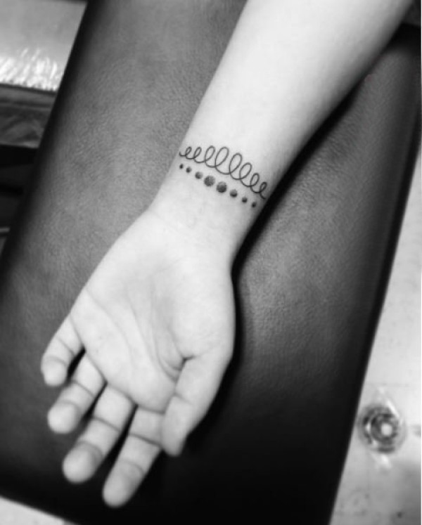多款女生手腕上黑色线条素描文艺唯美经典手链纹身图案