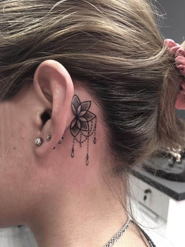 多款女生耳后黑色线条素描文艺小清新小图案纹身图案