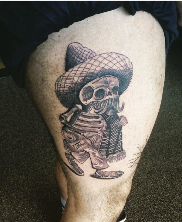 骷髅纹身 男生大腿上黑色的骷髅纹身图片