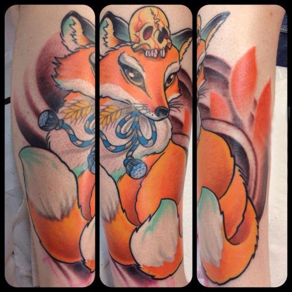 九尾狐狸纹身 女生小腿上温顺的狐狸纹身图片