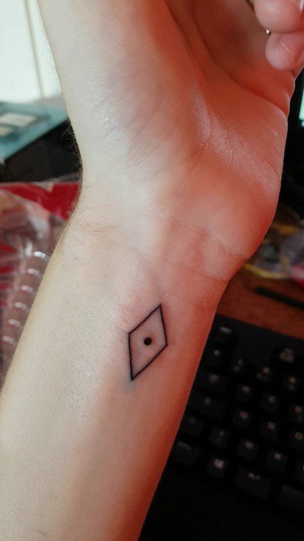 几何元素纹身 女生手腕上黑色的菱形纹身图片
