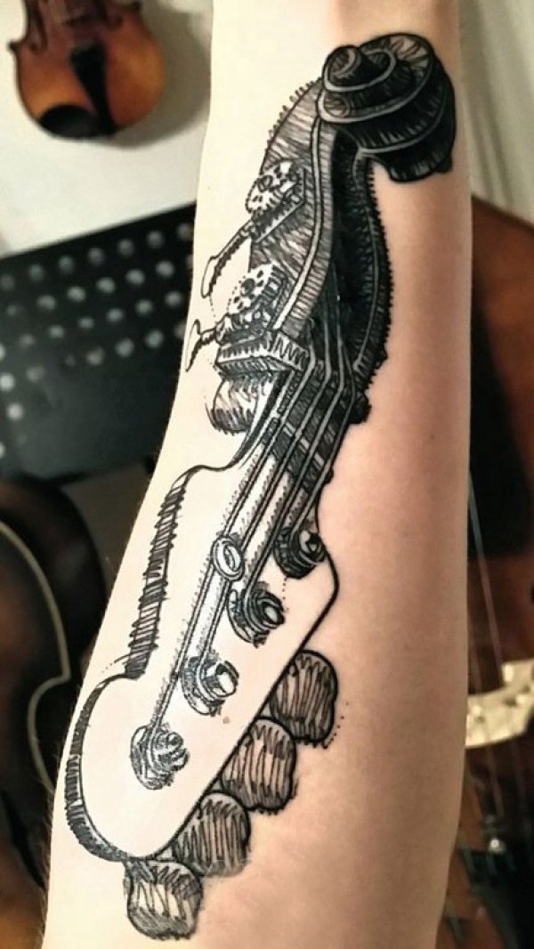 简单吉他纹身 男生手臂上简单吉他纹身图片
