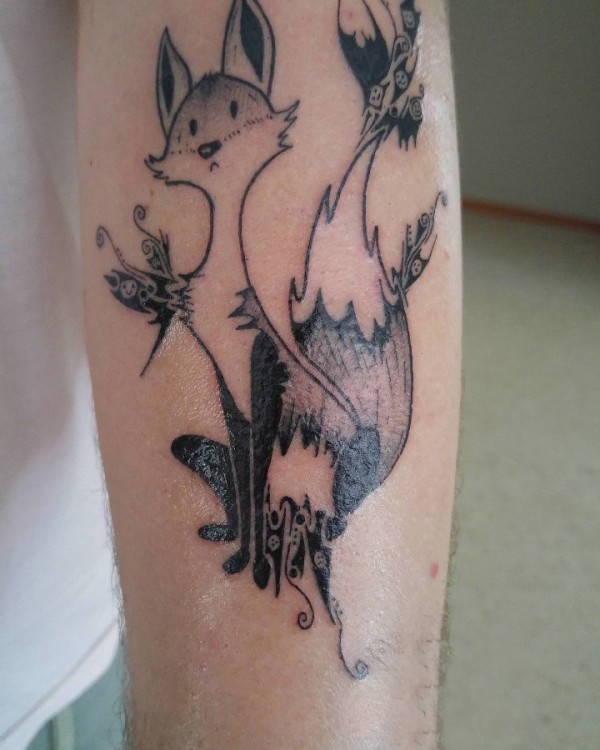 九尾狐狸纹身 男生手臂黑色的狐狸纹身图片