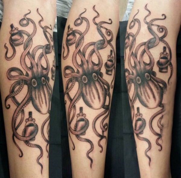 黑色章鱼纹身 男生手臂上黑色章鱼纹身点刺图片