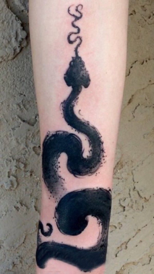 蛇纹身 女生手臂上蛇纹身水墨图片
