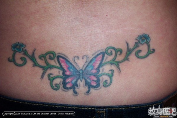 分享一款腰部时尚性感的蝶恋花纹身图案_腰部纹身图案大全_纹身图吧