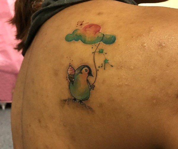 企鹅纹身图 男生肩部彩色气球和企鹅纹身图片