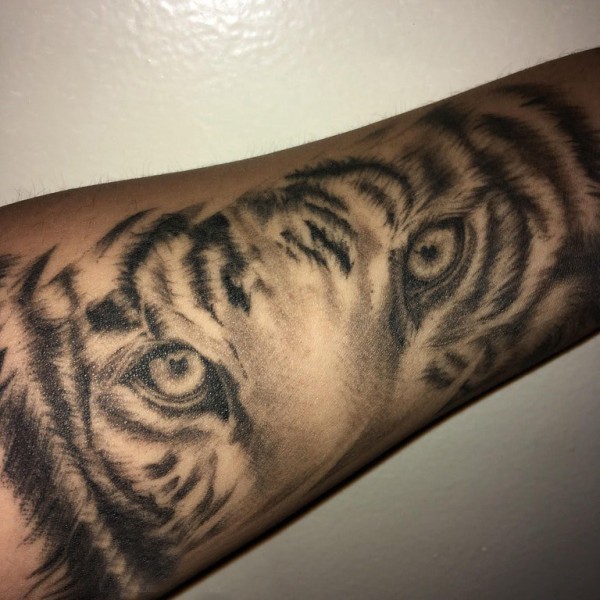 百乐动物纹身 男生手臂上黑色的老虎纹身图片
