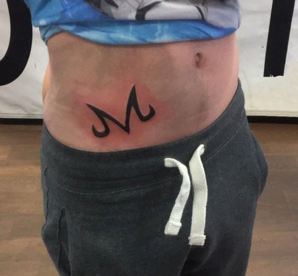 腰字母纹身 男生侧腰上黑色简单线条字母纹身图片