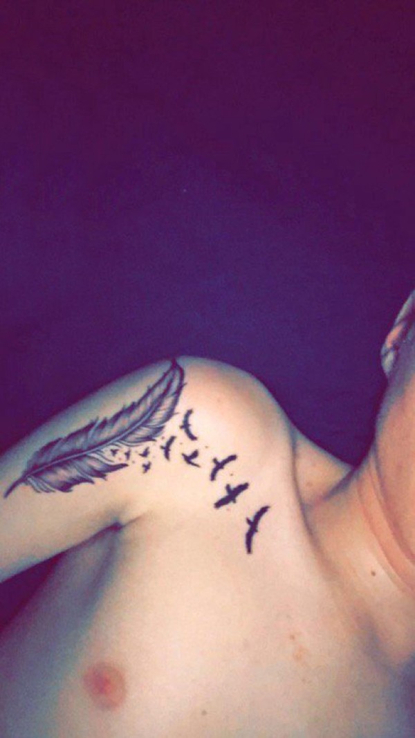 羽毛纹身图案 男生手臂上羽毛纹身图案