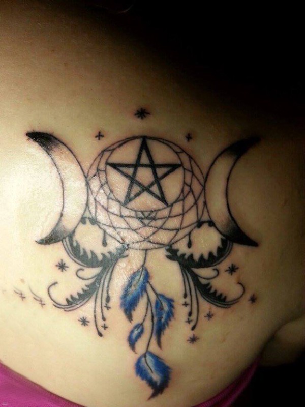捕梦网纹身图案 女生背部捕梦网纹身图案
