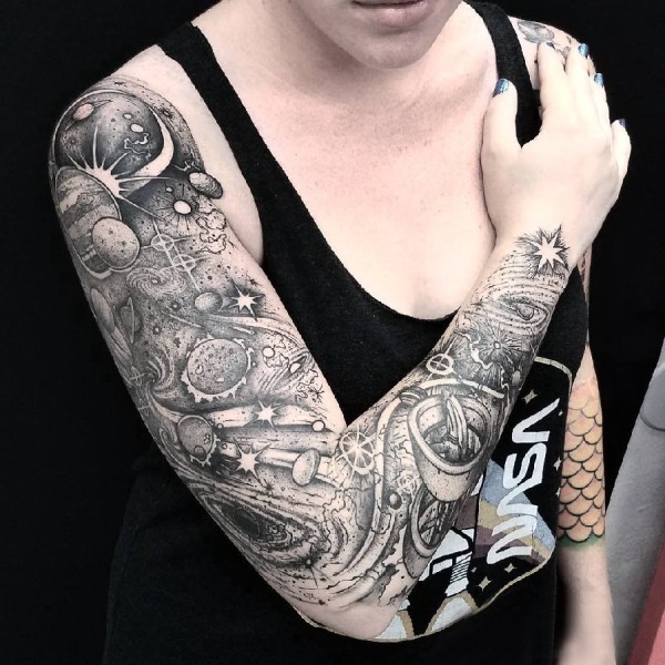 小星球纹身 男生手臂上小星球纹身小花臂图片