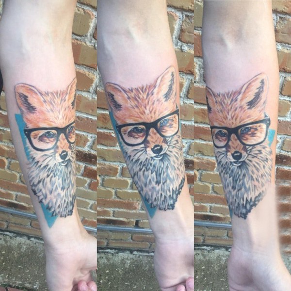 百乐动物纹身 男生手臂上彩色的狐狸纹身图片