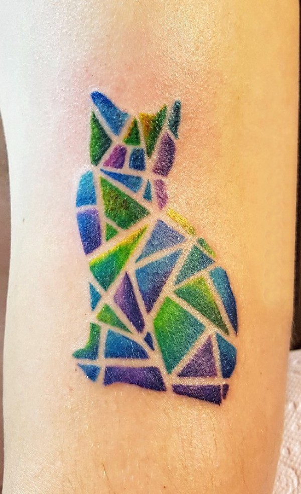小清新猫咪纹身 女生小腿上彩色的猫咪纹身图片