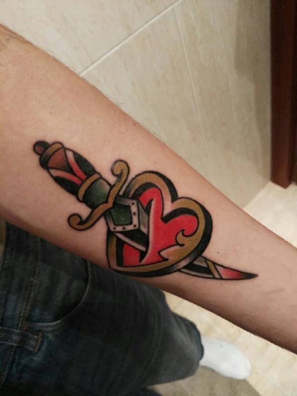 纹身心形 女生手臂上彩绘纹身心形纹身图片