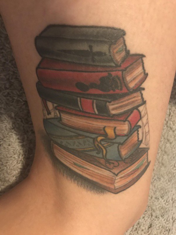 纹身书籍 男生大腿上彩色的书籍纹身图片
