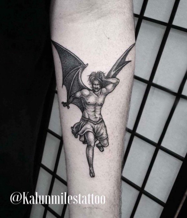 纹身守护天使 男生手臂上黑色的天使纹身图片