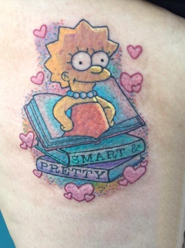 纹身卡通 女生大腿上彩色书籍和卡通纹身图片