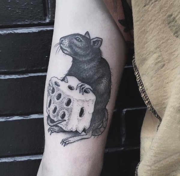 老鼠纹身图 男生手臂上黑色的老鼠纹身图片
