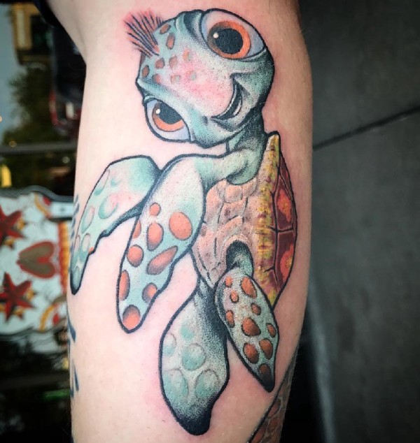 百乐动物纹身 男生小腿上彩色的海龟纹身图片