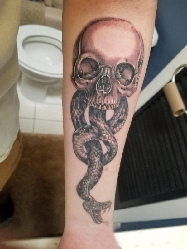 骷髅纹身 男生手臂上骷髅纹身和蛇纹身图片