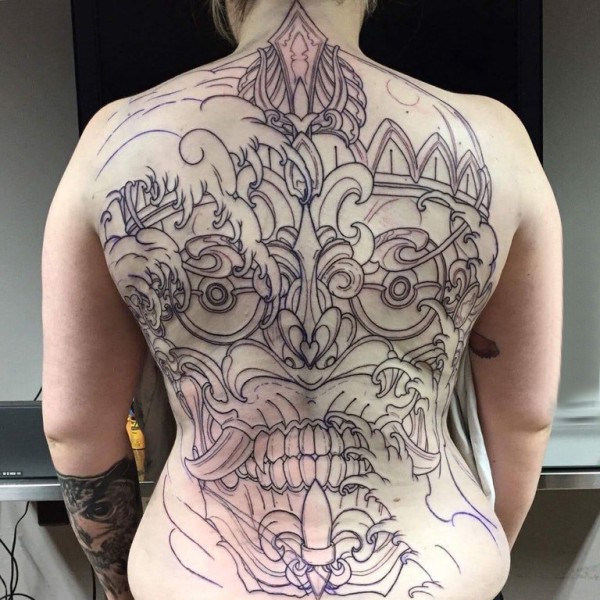 般若面具纹身 女生背部般若面具纹身图片