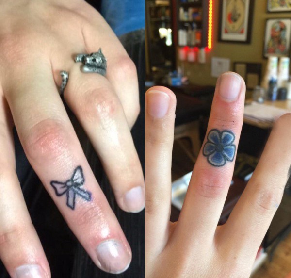 简约手指纹身 女生手指上花朵和蝴蝶结纹身图片