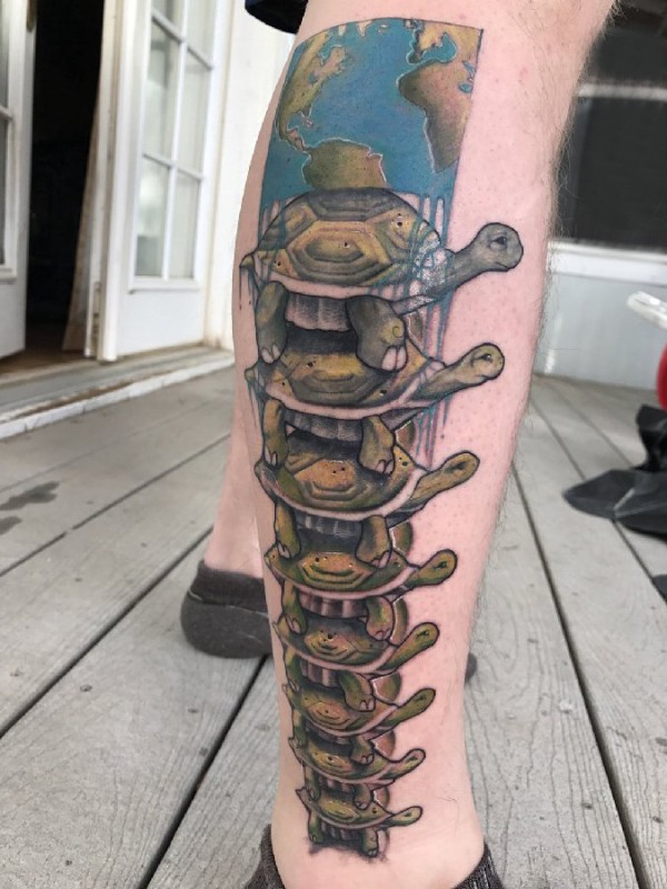 龟纹身 男生小腿上可爱的乌龟纹身图片