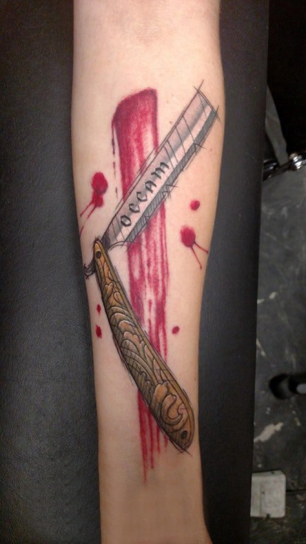 欧美匕首纹身 女生手臂上彩色的匕首纹身图片