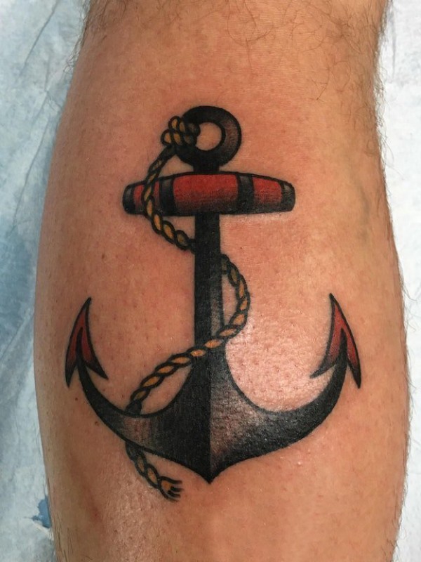 欧美船锚纹身 男生小腿上欧美船锚纹身图片