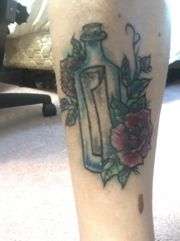 漂流瓶纹身 男生小腿上彩色的漂流瓶纹身图片
