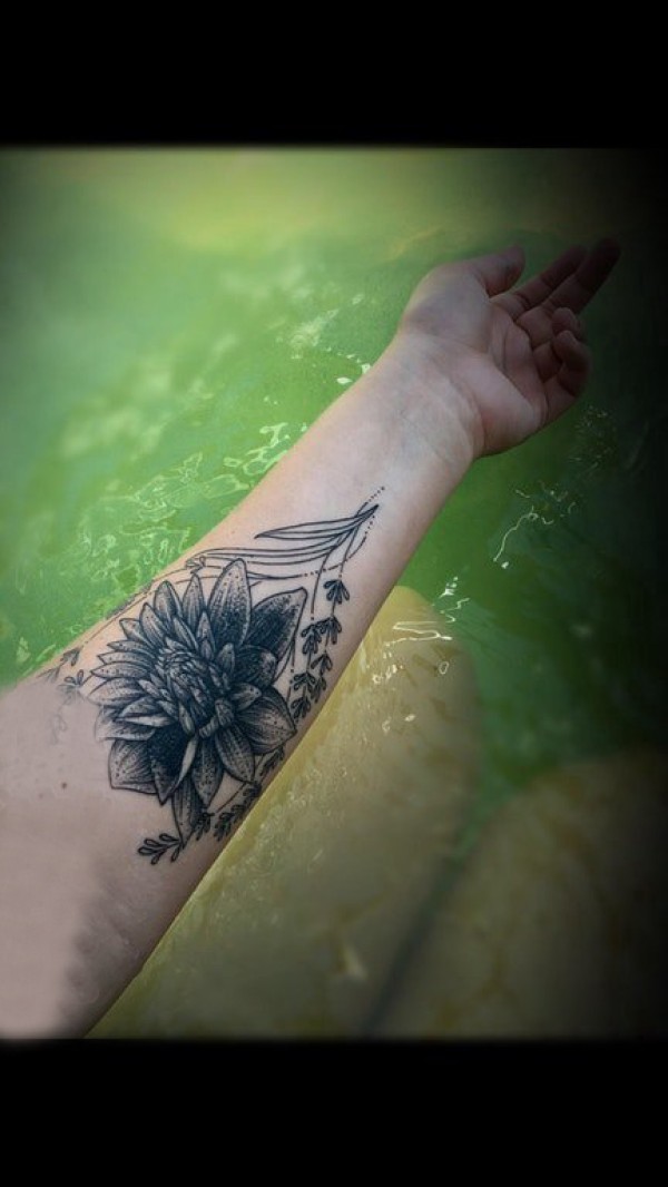 莲花纹身 女生手臂上黑灰纹身莲花图片