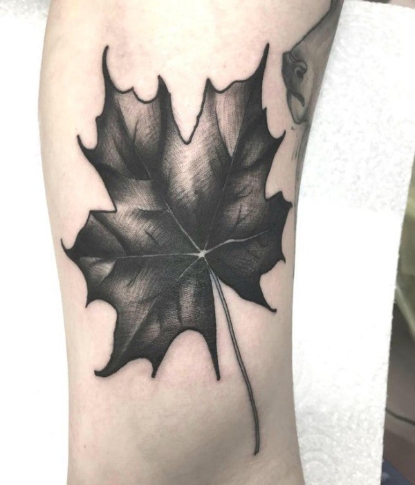 枫叶纹身图 男生手臂上黑色的枫叶纹身图片